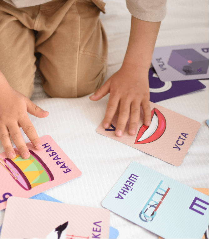 Картите са мултифункционални – освен за научаването на нови думи, овладяването на буквите и посоките им на изписване, те могат да намерят приложение и в множество други игри.